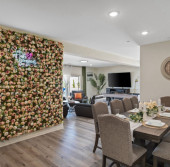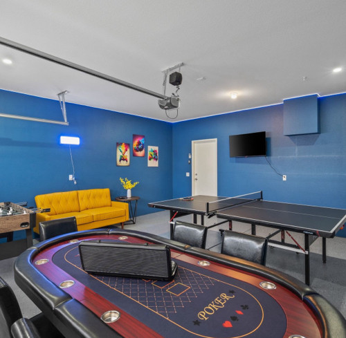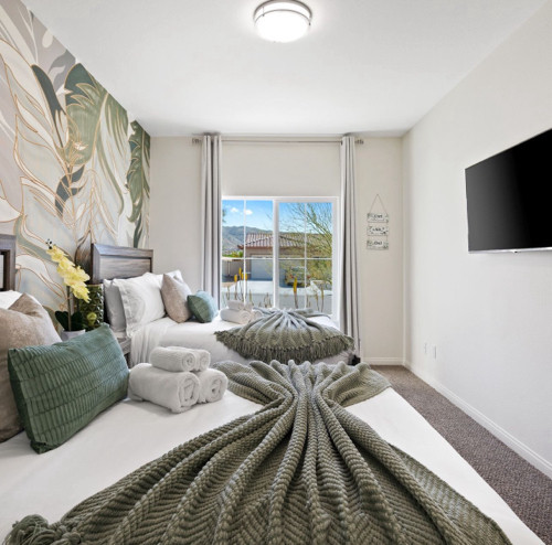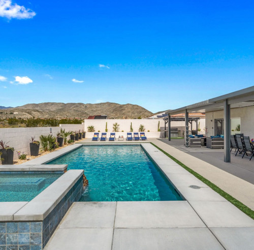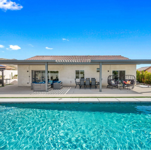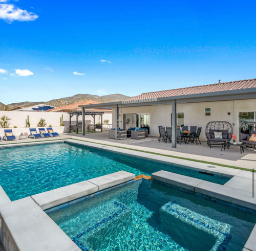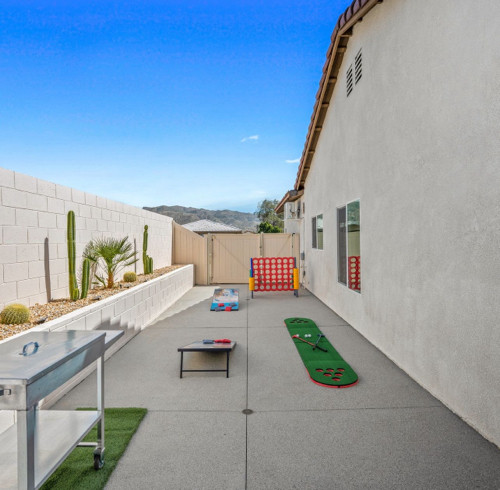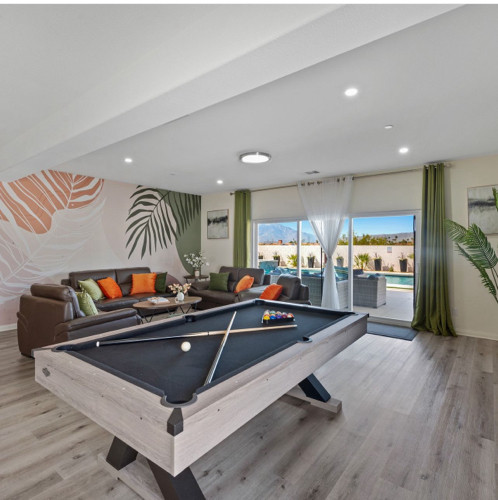 Welcome to the 4-bedroom, 3-bath gorgeous getaway in California which offers all the essentials, including a stocked kitchen, a variety of sleeping arrangements, a pool and spa, and a game area for some friendly competition. ✧ Heated pool & spa with color-changing LED lights (depth 3'-5') ✧ Gorgeous Flowerwall for great photos and photoshoot-ready corners in every room ✧ Game room w/ big poker, foosball, pool/billiard, and pink pong tables, 43" TV ✧ Large backyard with San Jacinto mountain views ✧ Lounge sitting area with fire pit and big dining area ✧ Outdoor gas grill and barbeque area ✧ Six sun lounge chairs and two egg chairs ✧ Fully equipped kitchen ✧ Lots of indoor board games ✧ Outdoor games: Mini golf, Cornhole game, Jumbo 4-to-Score Giant game for the whole family ✧ Four smart TVs with Hulu, Disney+, HBO Max, etc. (Free high-speed Internet) Keyless entry ✧ 17 min. to Palm Springs, Cabazon, and casinos MAY PROMOTION: book 3 nights and receive the 4th night for free.