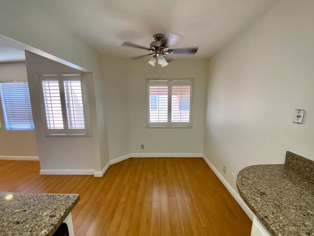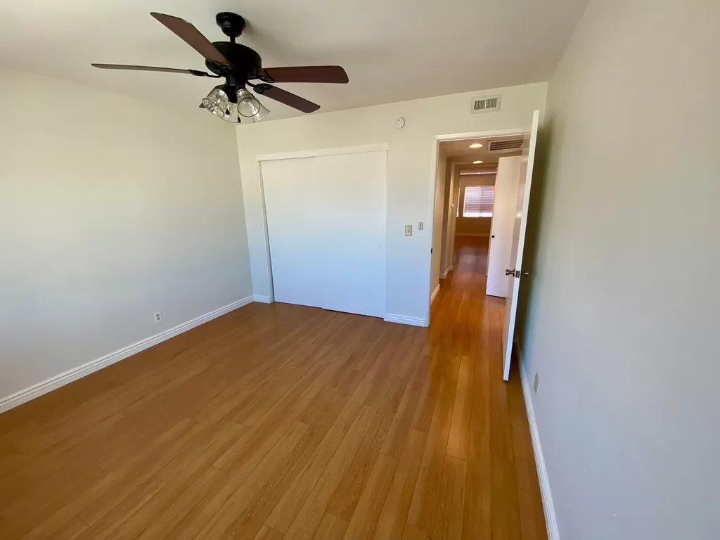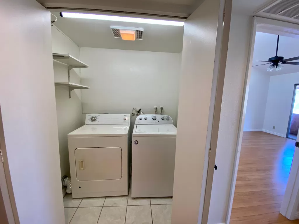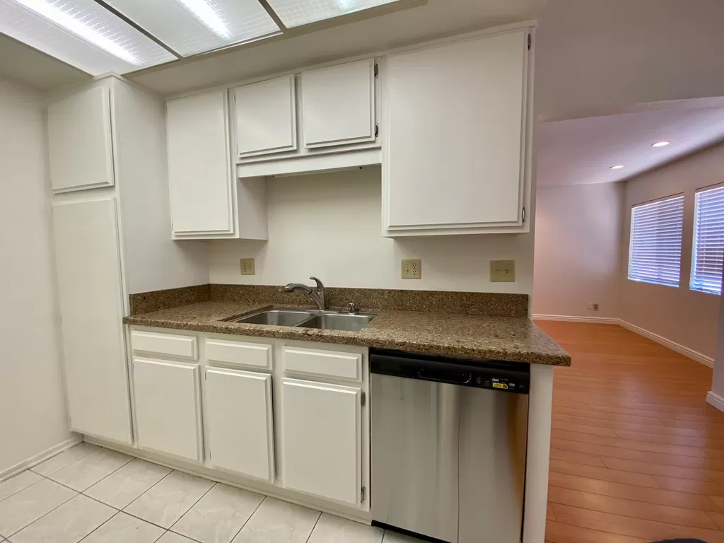 Bright, newly painted condo offering a range of amenities. This unit features central heating and cooling with a Nest thermostat, and ceiling fans in each bedroom. You'll enjoy the convenience of a private washer and dryer. The kitchen has been refreshed with upgraded appliances and a fan, opening into the dining area. The spacious main bedroom boasts a vaulted ceiling, an en suite bathroom, and a private balcony. Located in a quiet building close to major freeways, the condo includes a cozy fireplace and tandem two-car underground parking. The secure, gated Mediterranean complex also has a pool and is situated on a cul-de-sac. The unit is located on the second floor with no neighbors above. This is a non- smoking home. All applicants 18 years or older must complete a rental application.